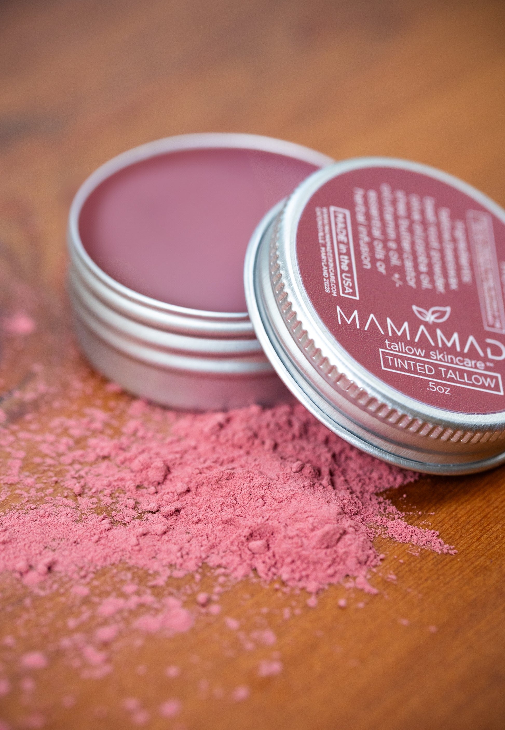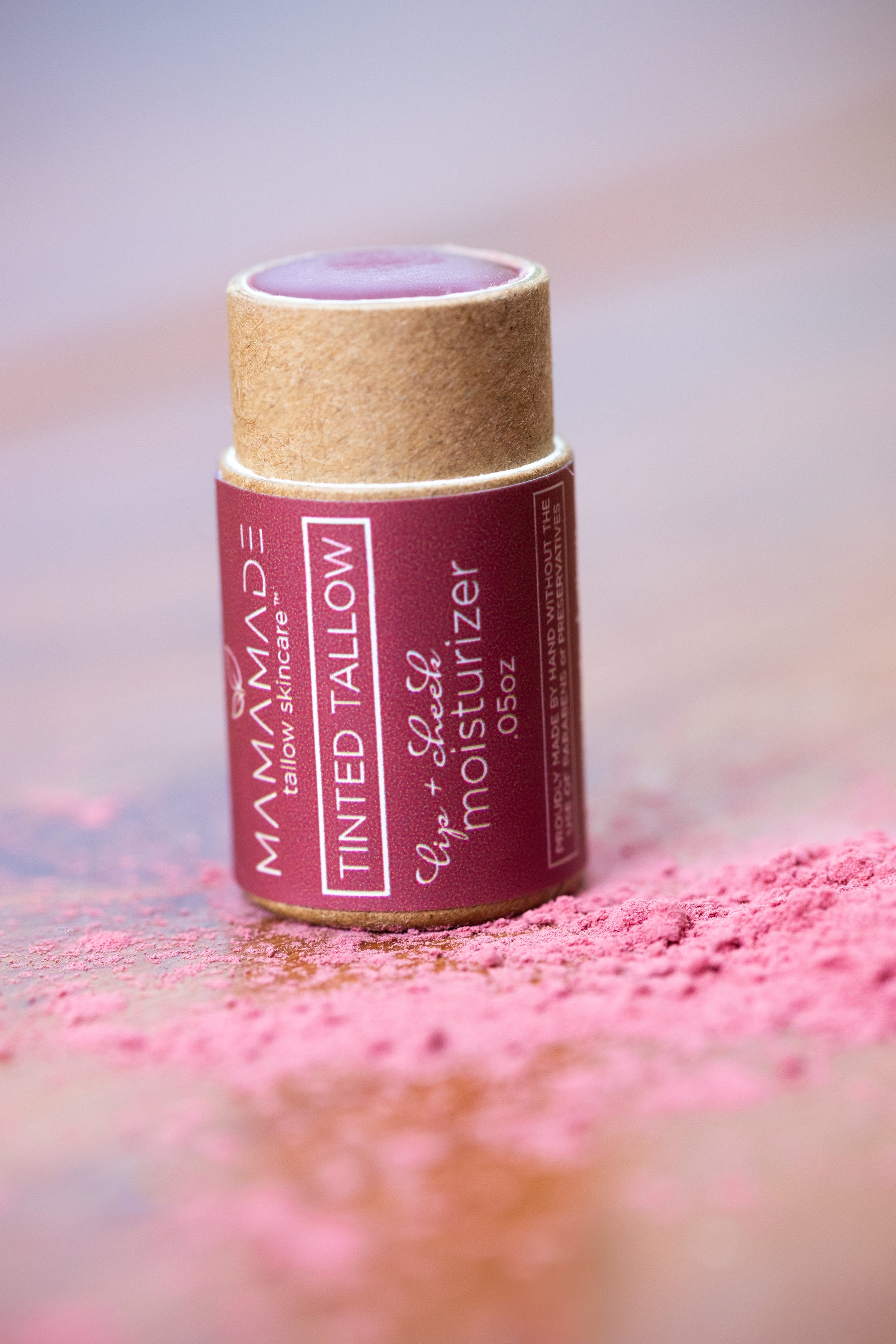 INGREDIENTS: Tallow, Cocoa Butter, Beeswax, Jojoba, Extra Virgin Olive Oil, Castor Oil, Vitamin E Oil, Essential Oil or Herbal Infusion. TINT - BEET ROOT POWDER